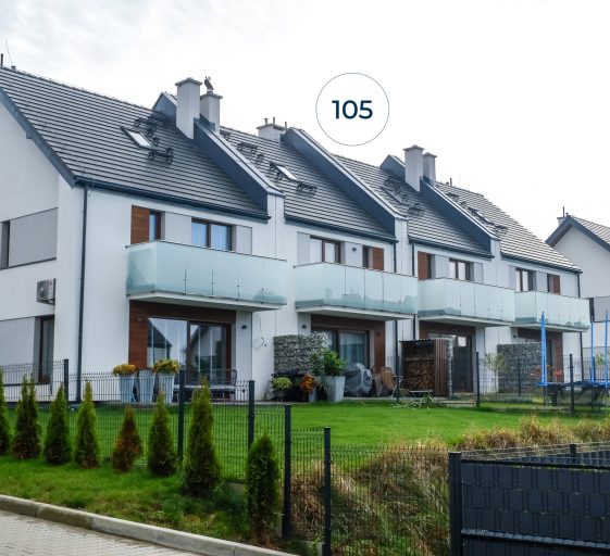 Dom nr 105 – gotowy do zamieszkania Na sprzedaż dom nr 105, starannie wykończony wewnątrz, gotowy do zamieszkania. Na wyposażeniu znajduje się ogrzewanie podłogowe oraz piec gazowy Buderus Logamax GB 72.